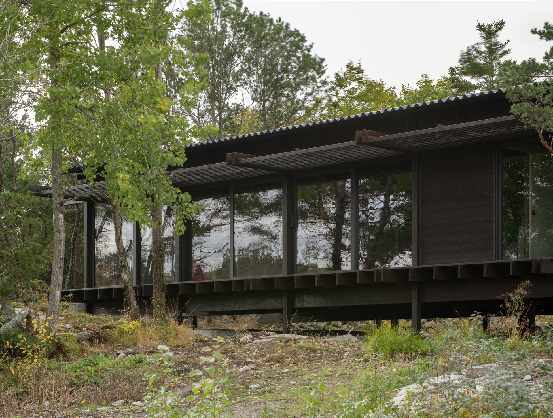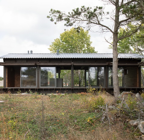 – Stedet er vår største inspirasjonskilde. Feriehuset ligger rett ved Tjurpannan naturreservat, et karrig og vakkert kystmiljø. Plasseringen har gitt oss ledetråder om hvordan vi jobbet med å plassere bygget i terrenget. Bygningen lander lett på bakken og er skånsom mot naturen. De glaserte langsidene vender mot øst og vest. Vi prøvde å holde øst-vest retning, og huset blir nesten en inngangsport å gå ut gjennom mot Nordsjøen og naturreservatet.