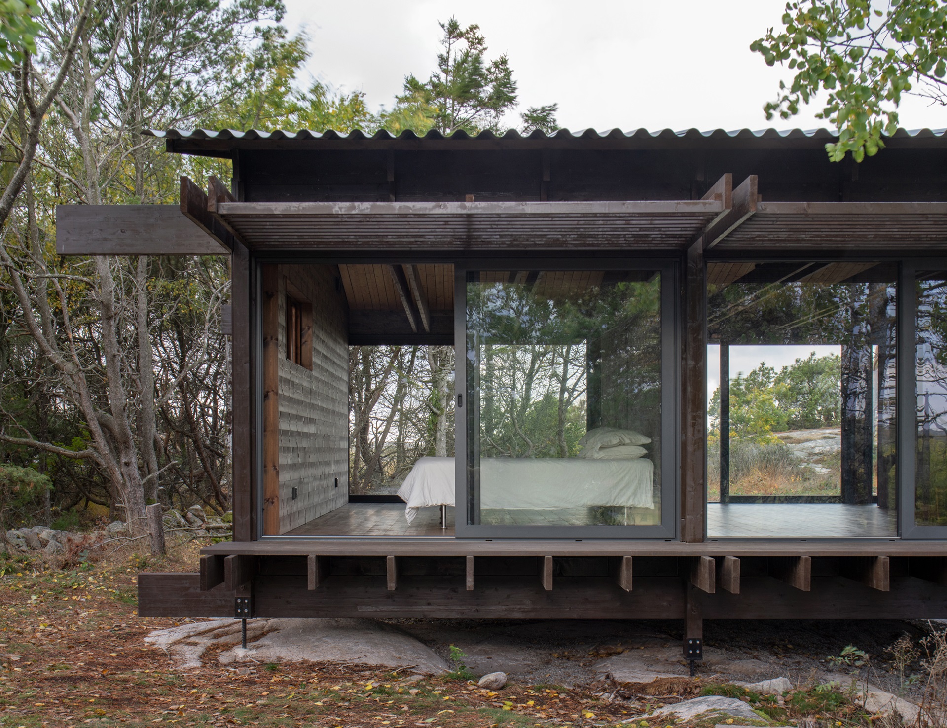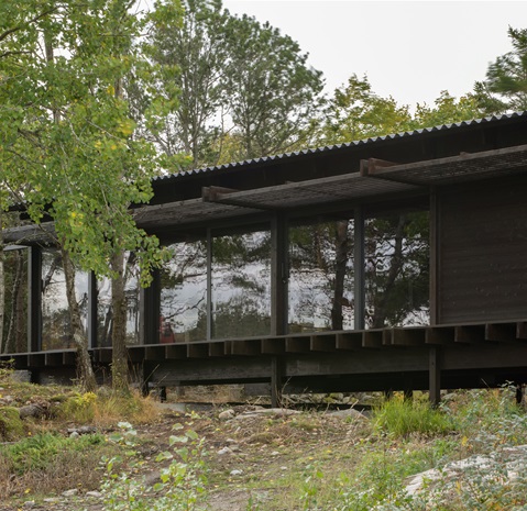 Et hus som både skiller seg ut og smelter inn på den svenske vestkysten, er Tjurpannan i Grebbestad. Huset er et privat feriehus på 90 kvadratmeter som ligger midt i et naturreservat. Det ble laget av HelgessonGonzaga Arkitekter i 2022 og nominert til Årets bygg 2023, Archdaily. Noen av årsakene er husets fine harmoni med naturen rundt, interiøret som skaper en portal til både skogen og havet, og platetaket, hvor både takrenner og nedløp er valgt bort.